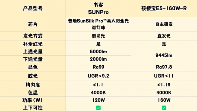 所以这次就挑了两款关注度比较高的书客SUN Pro和孩视宝E5B-160W-RS,看看它们实际有什么差别,顺便回答一下大家询问的“孩视宝护眼灯怎么样”。