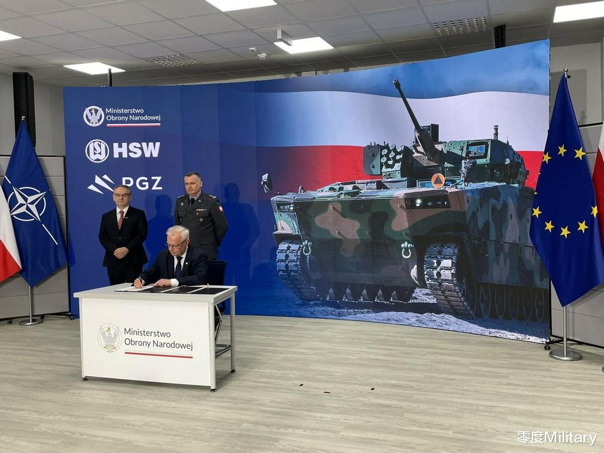 2025年3月27日,波兰国防部与波兰军备集团和波兰斯塔洛瓦沃拉钢铁公司组成的财团签署了一份合同,为波兰陆军订购首批111辆“獾”式步兵战车。这份合同的总价值高达17亿美元,波兰副总理兼国防部长弗拉迪斯拉夫·科希尼亚克-卡梅什出席了合同签署仪式。