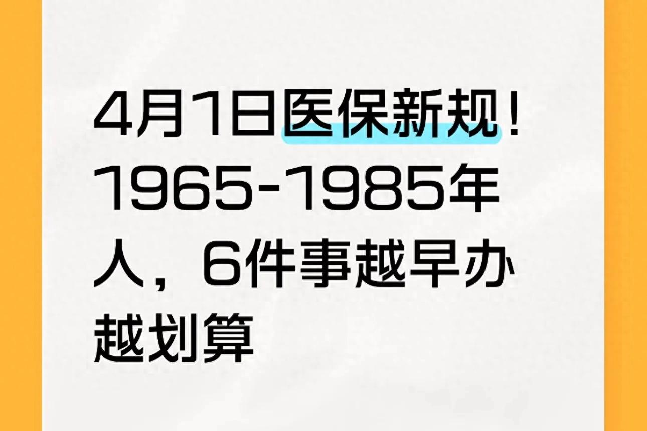 今天我把最核心的点,掏心窝子给大家捋一遍。特别是1965年到1985年出生的朋友,这6件事千万别拖,赶在4月前办好,能省大钱,少跑弯路!