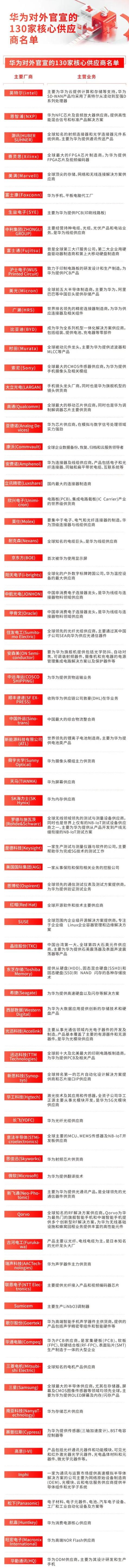 这些供应商覆盖了华为的各个产业链条,从半导体、手机到汽车和5G等技术领域,每个环节都有重要的合作伙伴。