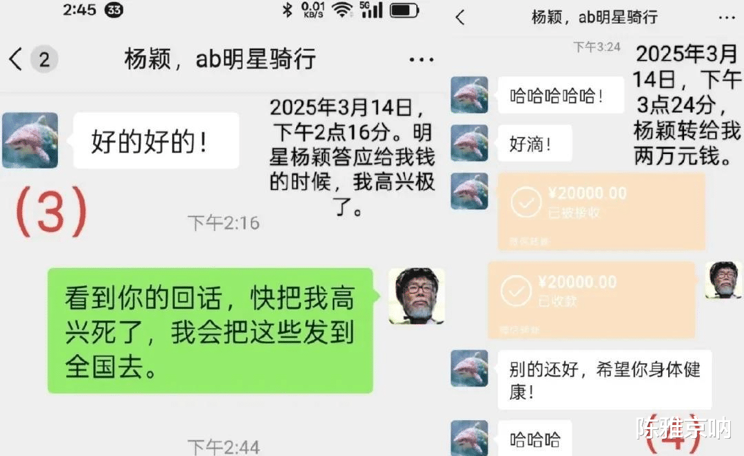 如今,徐爷爷公开向杨颖求助,并将聊天记录和转账截图晒到社交平台上,试图展现杨颖的善良与慷慨。然而,这种直接的方式却让不少网友感到不适。一些评论指出,徐爷爷虽然年纪大了,说话直率,但这样的行为容易让人产生误解,甚至可能对杨颖造成一定的舆论压力。