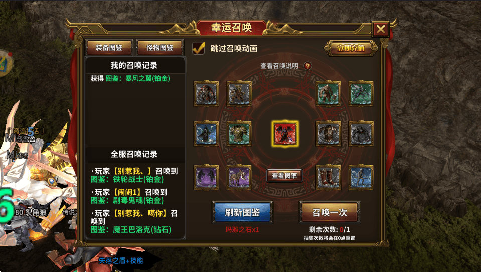 世界BOSS:每日12:00、18:00、20:00定时刷新,涵盖骷髅王、巴洛克、昆顿等经典BOSS,采用“伤害占比+参与奖”机制,蹭伤害即可领奖,高输出/首刀玩家必掉卓越装、神鹰火种、翅膀羽毛。