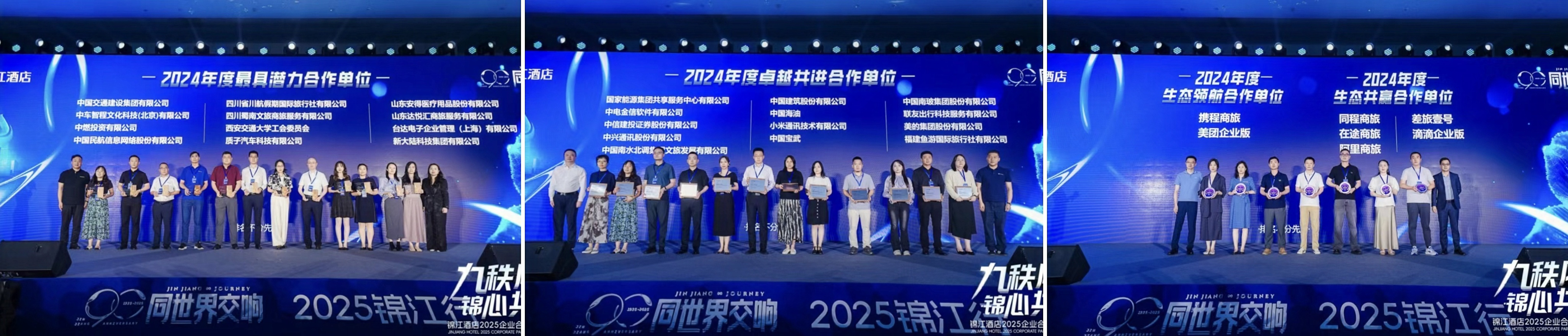 大会压轴环节举行了隆重的颁奖典礼,现场揭晓了“年度最具潜力合作单位”“年度生态共赢合作单位”及“年度价值共创合作单位”等重要奖项。这些奖项旨在鸣谢在差旅服务、旅游出行及数字化技术协同等领域,与锦江精诚合作、共创价值的优秀合作伙伴。