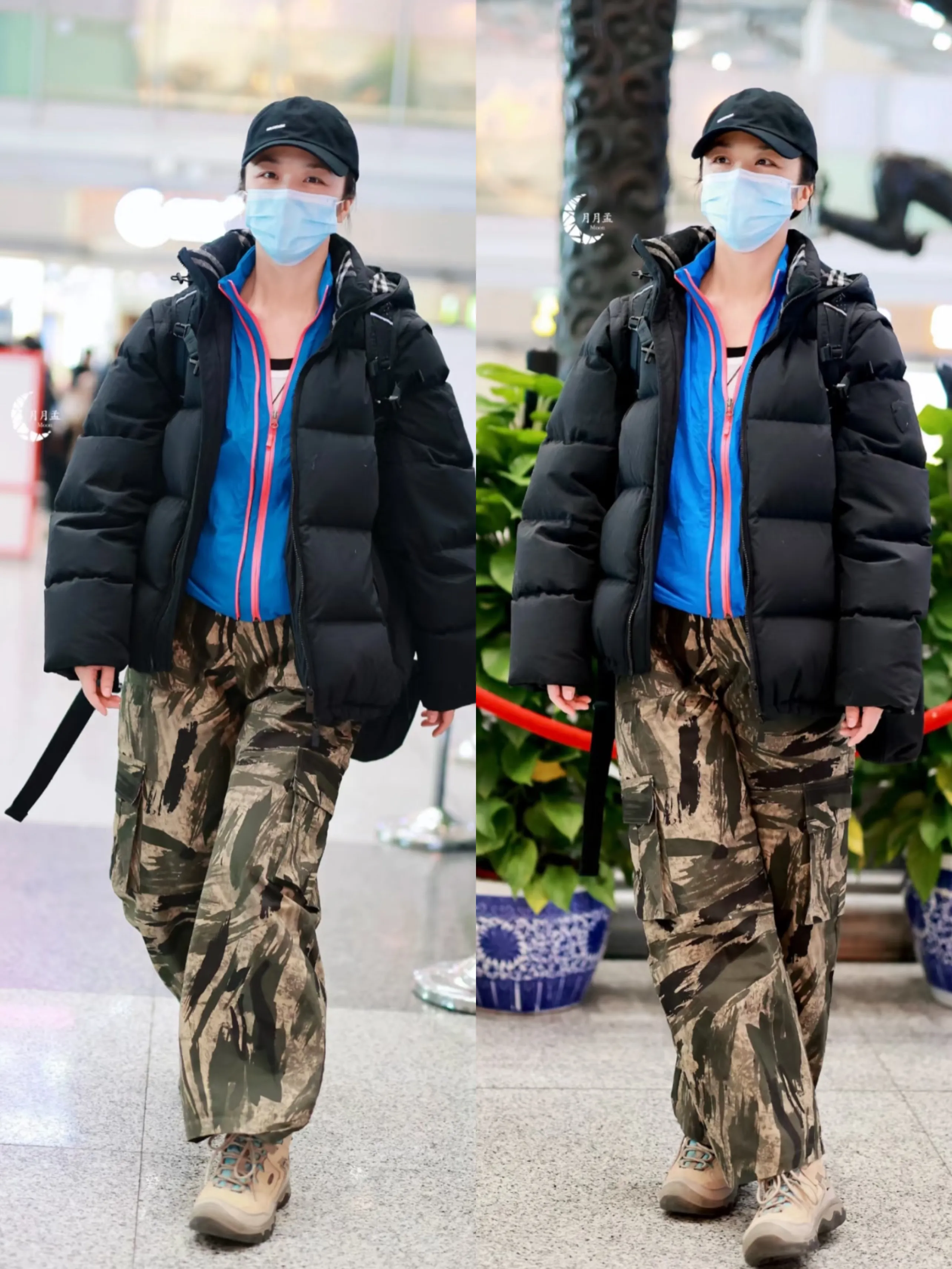 喜欢户外运动的汤唯,经常会穿搭运动休闲款式的服装,她选择了百搭的黑色短款棉服,内搭蓝色的运动卫开衫卫衣,叠搭撞色吊带衫,下半身搭配迷彩裤,英气十足!实力演绎女人帅起来,没有男人什么事儿!