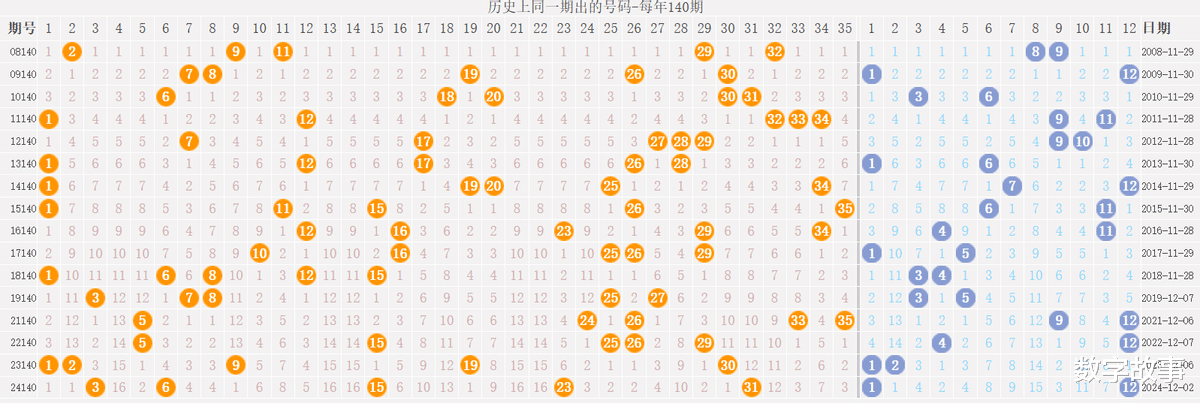 2) 历史同一期: 每年140期 (共16期)