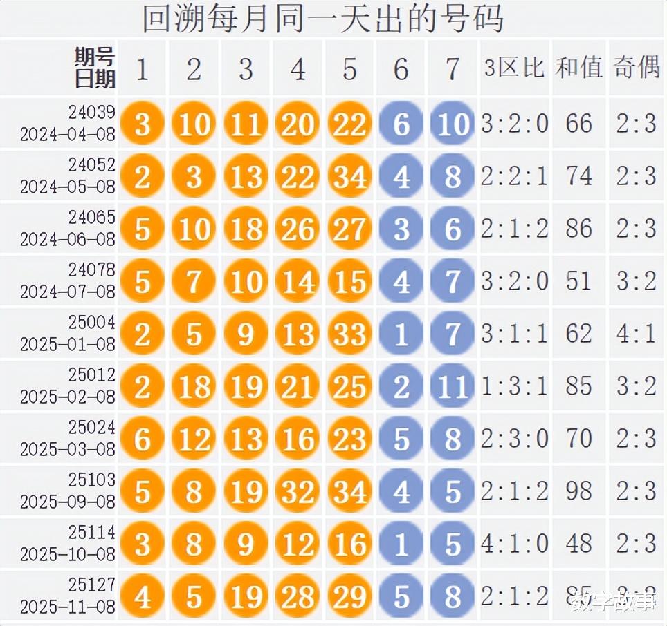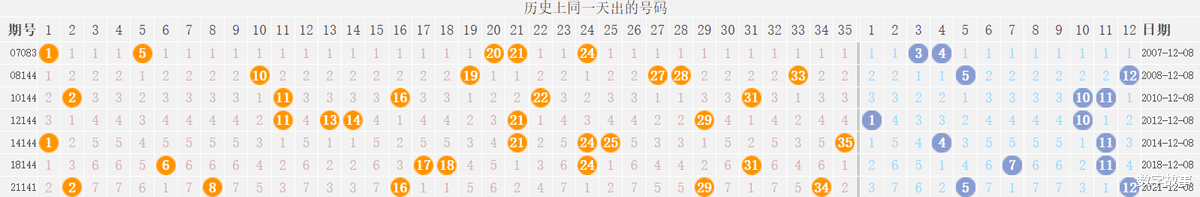 【其他历史数据查询统计】大乐透历史上的今天2025-12-07 星期日 大乐透不开奖每年12月07日出号情况: