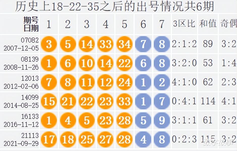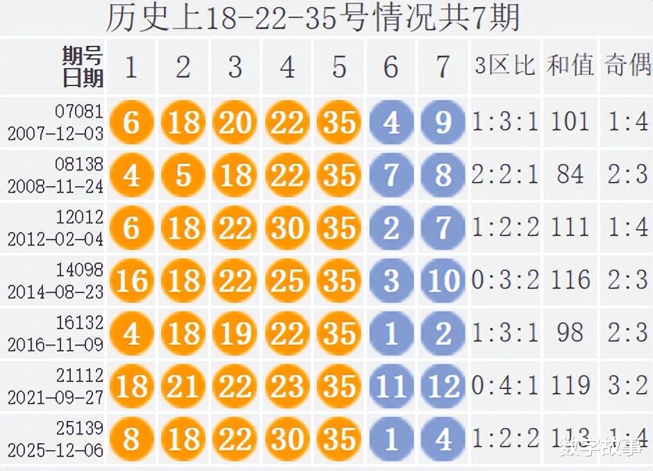 大乐透前区号含18-22-35历史统计
