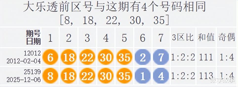 文末有大乐透前区号8-22-30, 18-22-35的历史统计。【体彩大乐透25139期开奖结果及统计】前区号组合历史上有1期四球相同,后区1-4中断48期遗漏;4注一等奖,奖池8.306亿。