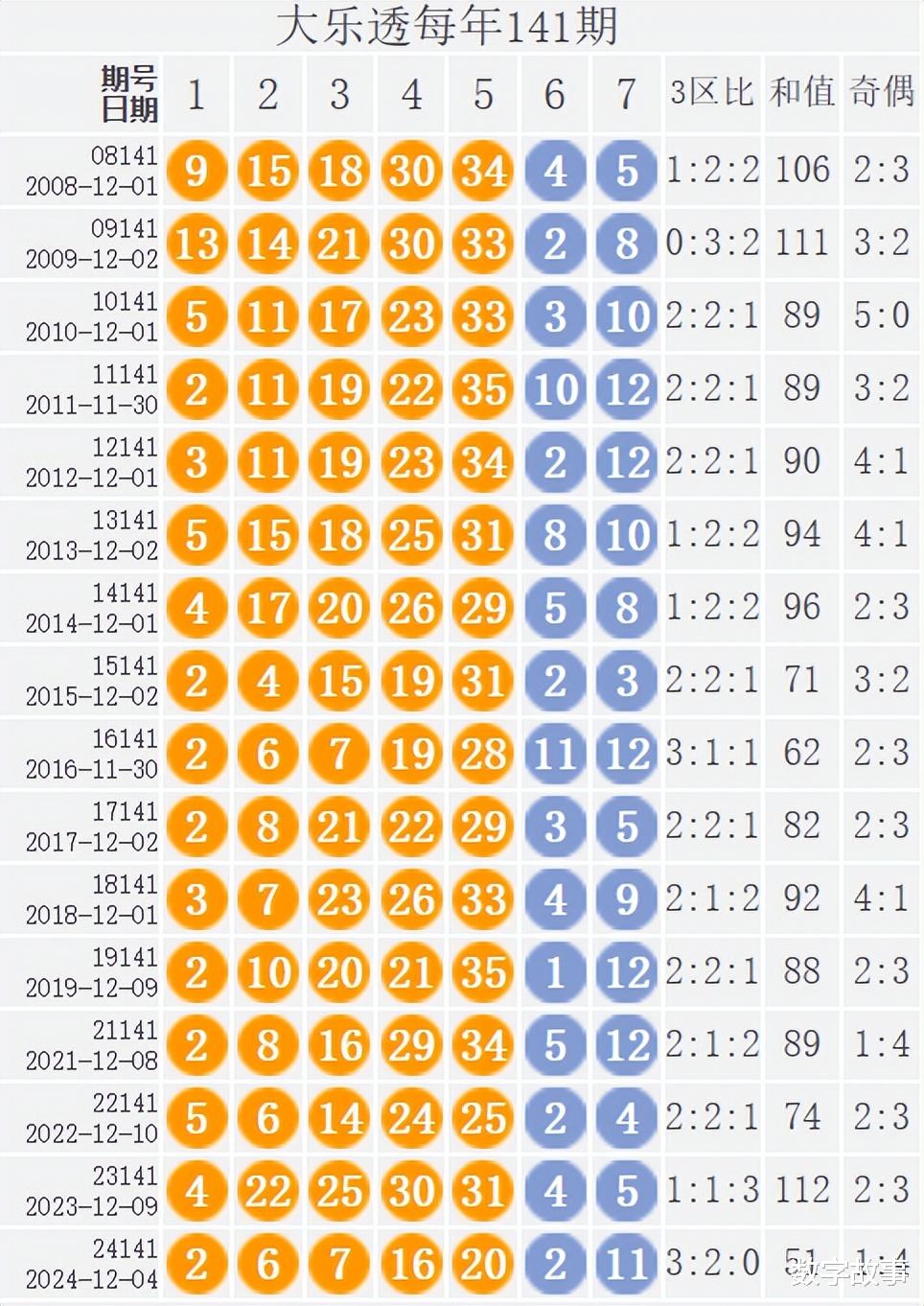 大乐透每年141期的出奖号