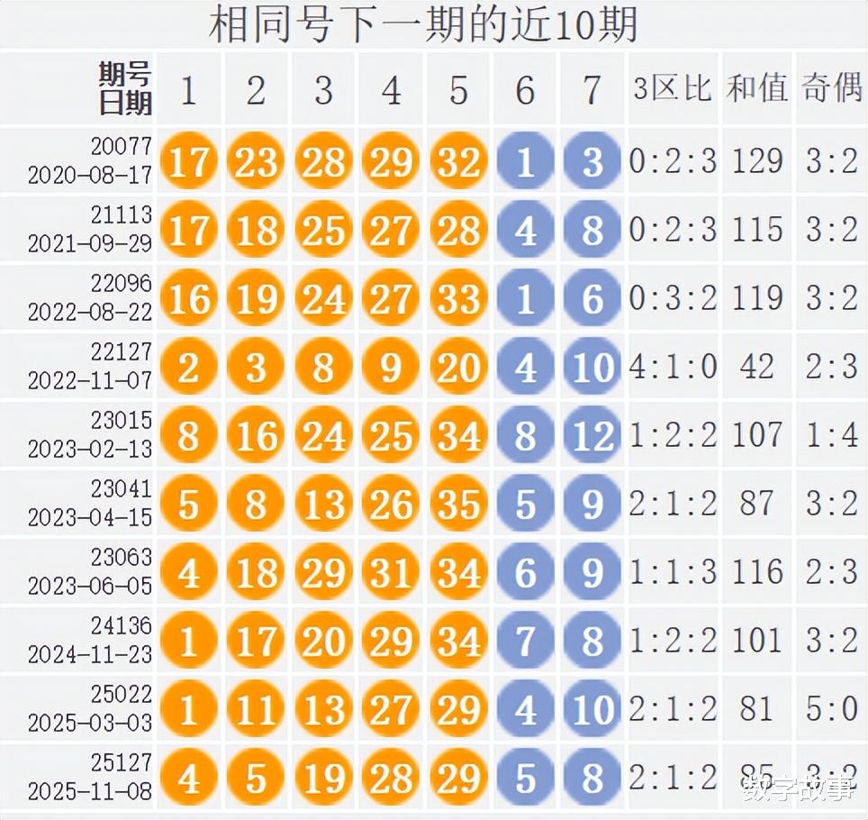 相似号下一期的近10期统计: