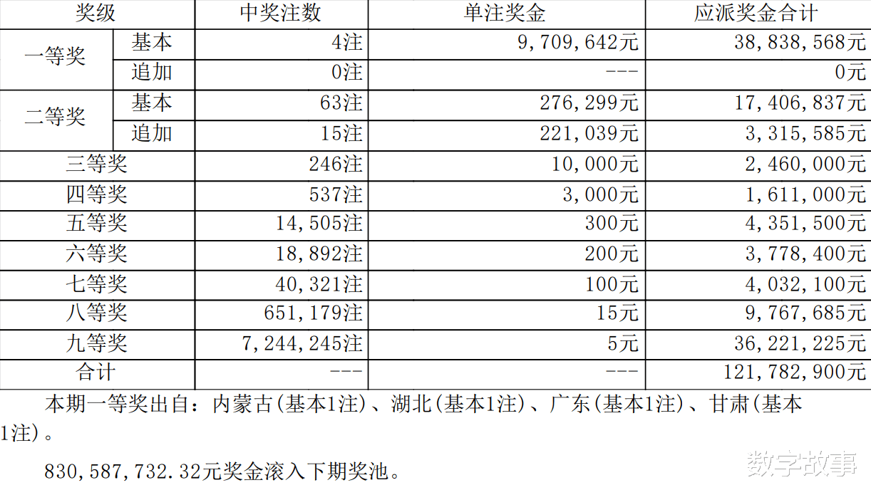 奖池滚存及一等奖数量: