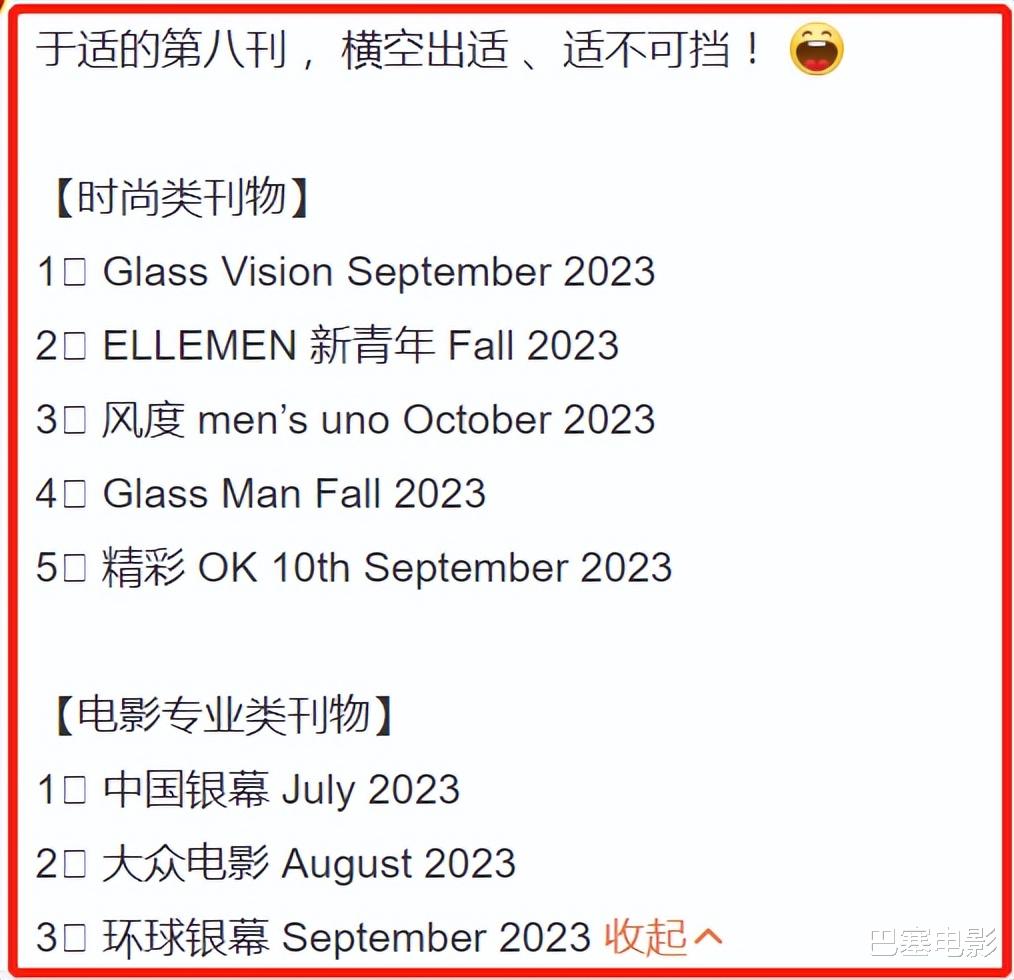 另外,堪称“现象级”的爆红,也给于适带来了登上杂志封面的机会。