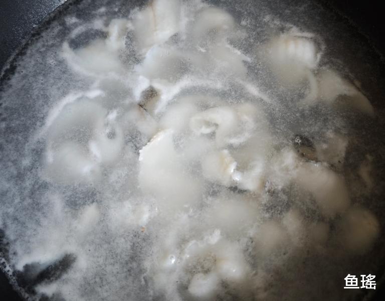 配菜全是“气氛组”:大葱取葱白段,切10cm长丝,能绕手指不散;红椒半个去蒂去籽,也切成头发丝,负责“红灯笼”配色;蒜粒5颗拍成“金沙”,大小如绿豆,太小会焦,太大不香;再抓一小把新鲜花椒,青红皆可,提前用厨房纸按一下,省得待会儿“油里放炮”。最后烧一小锅水,水冒虾眼泡(约80℃)关火,把鱼片分散下锅,30秒边缘变白即可捞出,沥水铺成“鱼鳞阵”,这一步叫“低温预熟”,既杀菌又锁汁,后面不怕“外焦里不熟”。