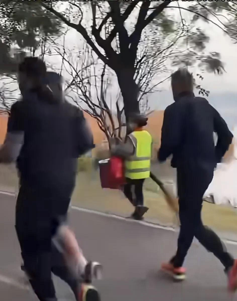 在今天看到的马克龙晨跑视频里有个有趣的发现,当马克龙和随行人员在湖边跑过时,镜头里出现了一位环卫阿姨,她正拿着打扫工具走在湖边,这么一队惹人注目的人从她身边经过,阿姨连头都没抬,依然专注在自己的路,这松弛感绝了!