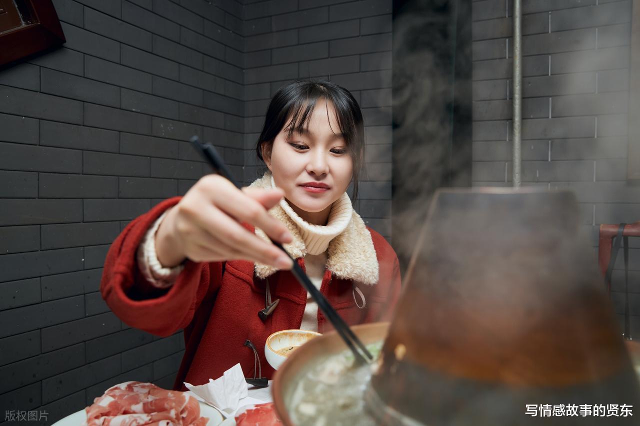 老板娘也没多问,放下菊花茶,又塞给她一包纸巾,絮絮叨叨地说:“这菊花败火,多喝点。一个人吃火锅也挺好,自在!”