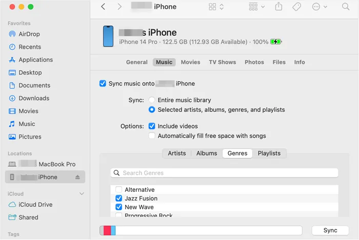 自从 macOS 上的 iTunes 停止服务后,Finder 已成为本地同步的主要中心。这种方法最适合管理大型媒体库(音乐、电影和电视节目)以及创建完整的本地备份。您可以使用它通过 USB 或无线方式将 iPhone 与 Mac 同步。