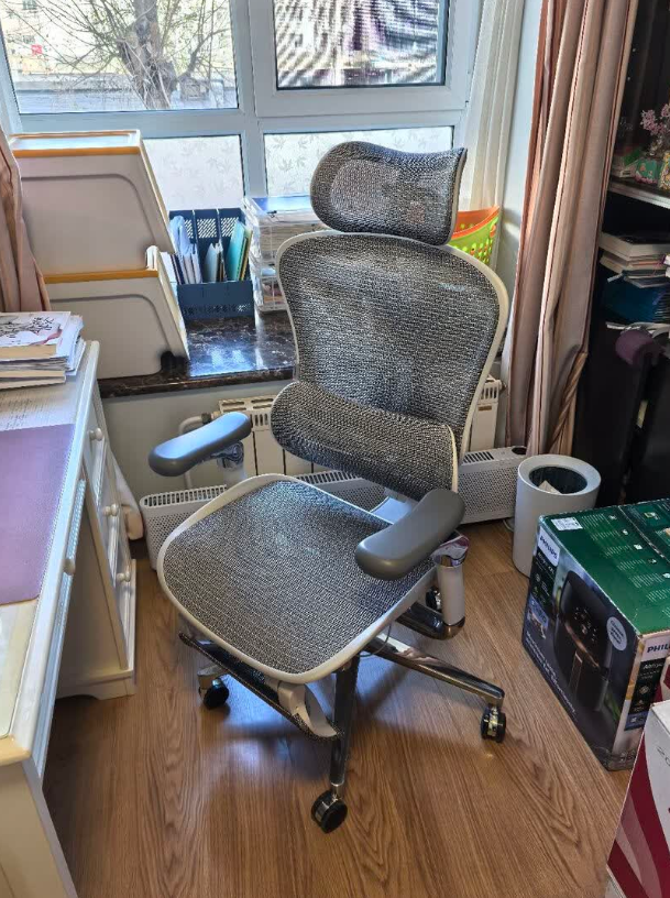 杜邦高分子背框加进口网布,弹性和耐用度都很高,长时间使用不容易塌。铝合金底盘、自研结构、四级气压棒整体质感扎实,属于定位偏高端、但体验确实稳定的一款。