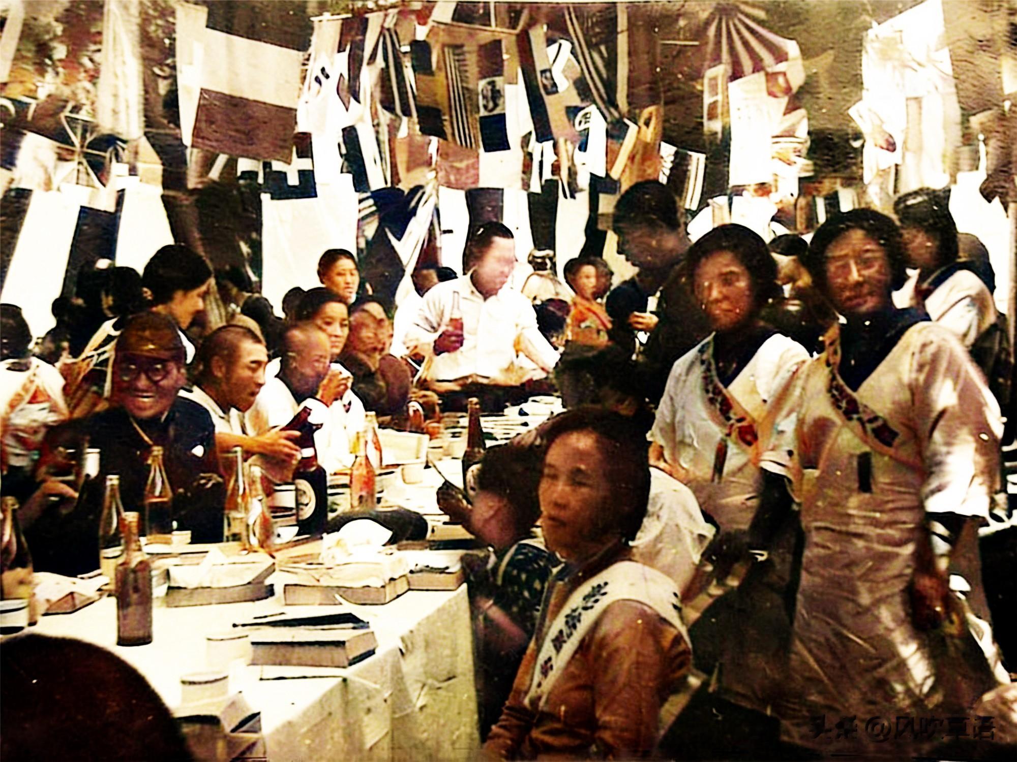 1940年10月30日,侵华日军在彰徳城外的新民街建起了一座神社,供奉日本所谓的 “国家神道” 神祇,为战死的日军官兵招魂。图为神社落成当天,在城外举行的庆祝酒会。