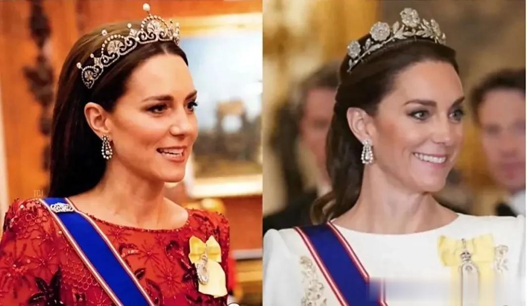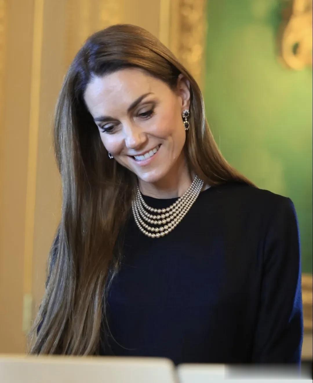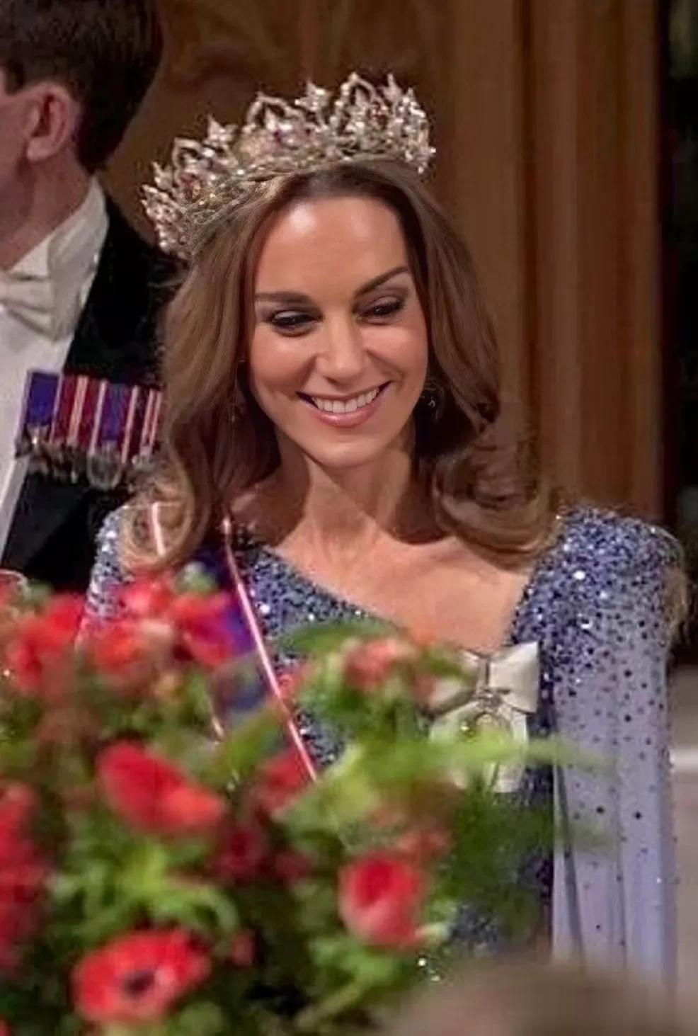 不过凯特在病愈后的几次重要场合都是选择披肩发来佩戴冠冕也引起了关于“假发”的疑云,原因是假发片的结构确实不适合做盘发造型,会“露馅”的可能性更高,而且王室长发的女性更多的是习惯于盘发戴冠冕,所以凯特是不得已选择披肩发戴冠冕的。