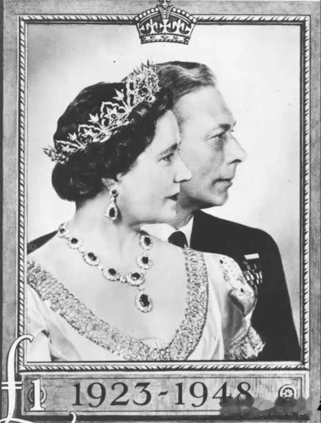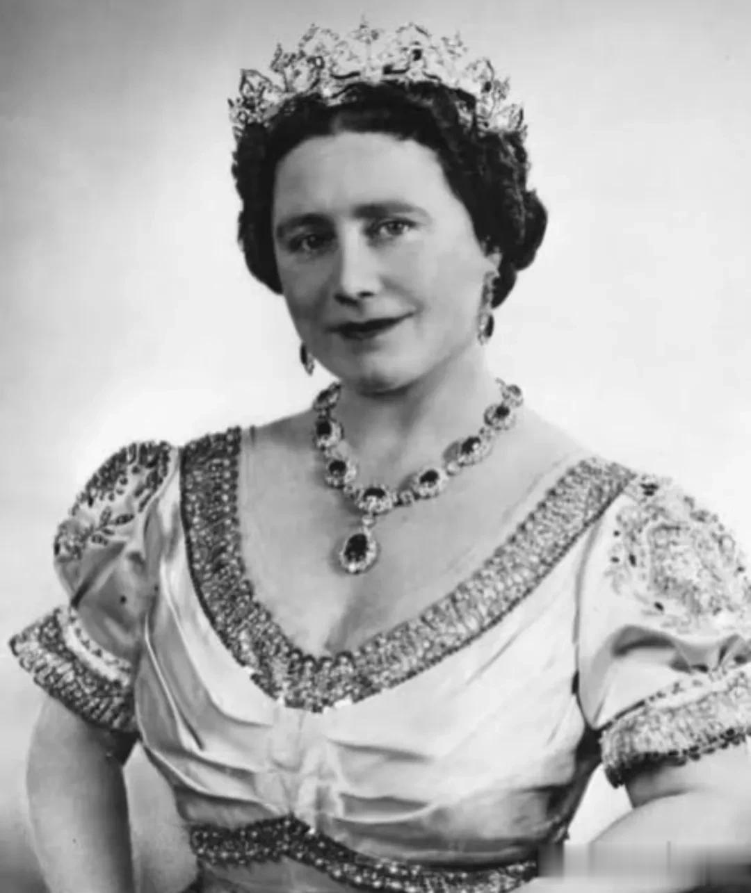 传到了伊丽莎白女王的母亲时,这件珠宝成了她最为喜爱的几顶冠冕之一,从照片看这个冠冕圆型的大廓形设计确实是非常适合伊丽莎白王太后的脸型,从中年到白发苍苍时都能找到她佩戴这顶冠冕的照片。