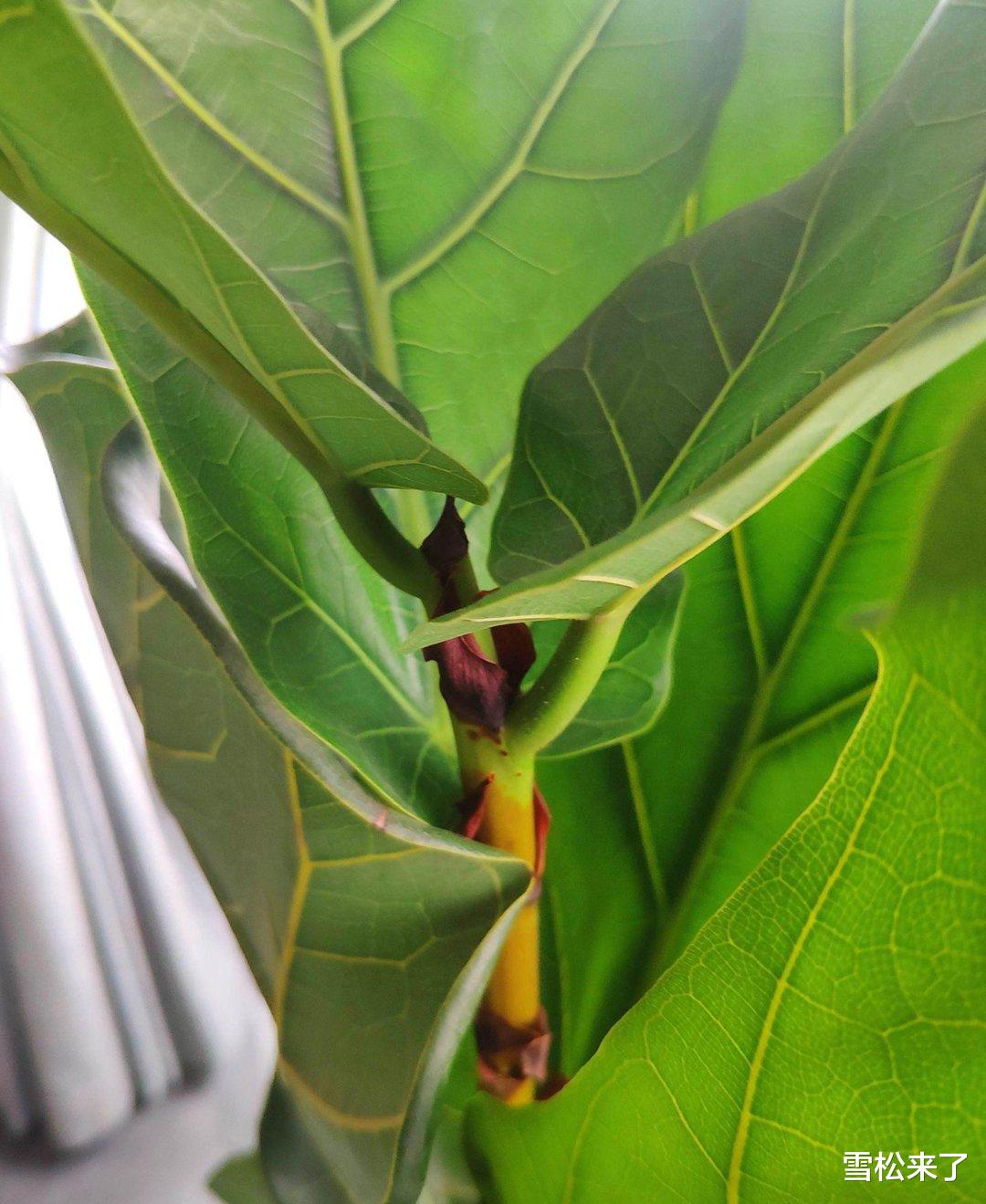 回到我们最初说的琴叶榕生长不匀称的问题,除了前面提到的遮光和定期旋转,在修剪方面也能起到一定的作用。如果发现琴叶榕的某一侧枝叶过于茂盛,而另一侧比较稀疏,可以对茂盛的一侧进行适当的修剪。比如在武汉的一位花友,他发现自家的琴叶榕右边长得特别茂盛,左边却比较稀疏。他就把右边比较密集的几片叶子剪掉了,这样琴叶榕就有更多的养分供应到左边较弱的那一侧。经过大概20天的时间,琴叶榕两边的生长就开始变得比较均衡了。