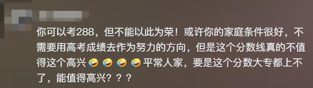 要知道,山河四省,尤其是河南省,向来都是高考大省,288分连中等水平都算不上,本科线更是遥不可及。