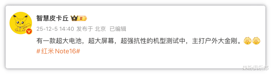 12 月初,知名爆料者「智慧皮卡丘」的一条动态引发广泛猜测。