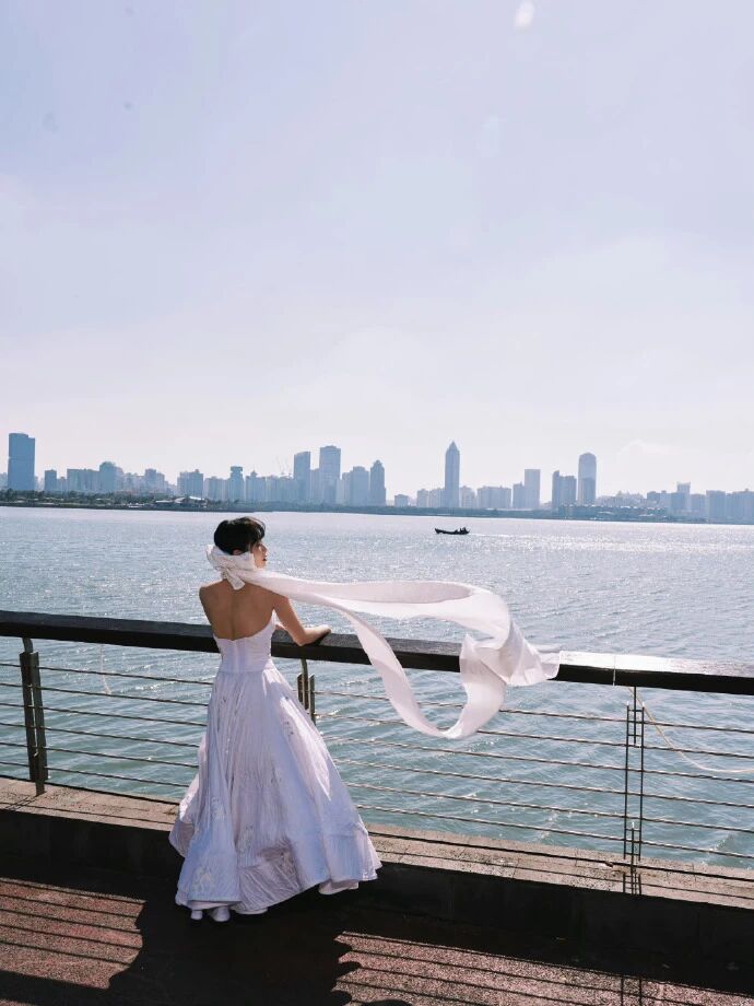 :柔肩棱的选柔廓白色纱裙(贴肩弧),搭小巧蝴蝶结饰(不浮夸)衬丽感,让 “你的柔润骨相” 撑住纱的仙,不是 “被仙裙裹成浮夸壳”;