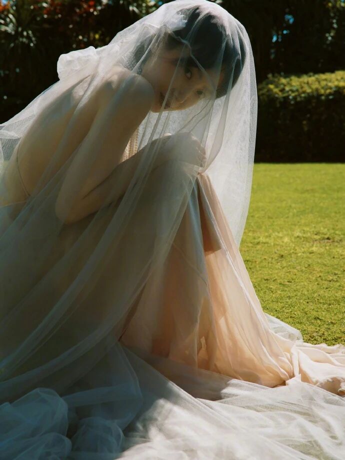 不用高定婚纱,也能复制这股 “雅骨清丽感”: