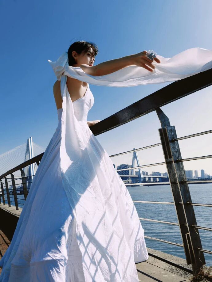 谁再说 “高定婚纱 = 浮夸的仙壳堆衬”?看宋茜这波星光大赏造型 ——Julien Fournié 白色伞裙的柔廓刚好贴住她的柔肩棱,把 “纱的仙” 裹成 “骨相里的雅”;蝴蝶结头饰的甜顺着腰棱细弧走,让 “蝶的丽” 衬着 “魂里的清”;海边的风裹着纱裙的垂感卡着她的骨相清丽,不是 “装仙装优雅”,是她的柔润骨相,接住了高定婚纱的仙与蝶饰的甜,把 “闭场高定” 从仙奢标签,拽成 “骨相、柔纱与蝶饰共振的‘楚瑜’优雅清丽感”。