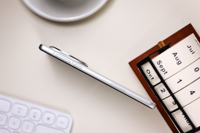 OPPO Find X8 Pro的机身厚度仅有8.24mm,比上一代的Ultra薄了13.7%,即使是镜头模组处高度也只有3.67mm,比上一代的5.2mm降低了30%,镜头并没有非常突兀的凸出感,看起来十分的纤薄。