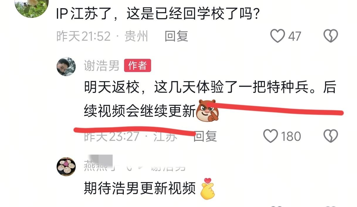 谢浩男留言说,这几天他还会把后续视频持续更新。