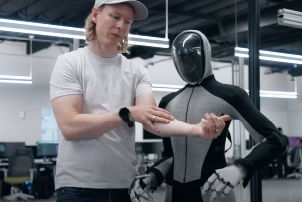 安全性是NEO Beta设计的首要考量。在关节处,NEO Beta采用了串联弹性驱动器,这种驱动方式大幅降低了机器人的刚度,从而降低了碰撞时的能量。此外,NEO Beta采用了类似人体肌腱的柔性驱动技术,用钢丝绳来传递力量,而不是传统的刚性液压系统,这种驱动方式不仅让机器人更加灵活柔顺。这种设计使得NEO Beta在与人类互动时更加安全可靠。