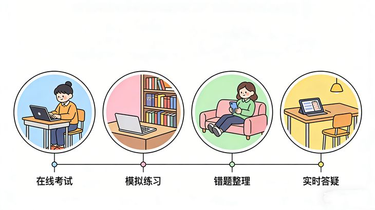 核心优势:精准复刻正式考试规则与答题环境,支持自定义考试时长、答题顺序、交卷规则,帮助考生提前适应考试节奏。具备严格的防作弊体系,除人脸识别、全屏锁定外,还支持答题轨迹监测、多设备登录预警,保障考试公平性。数据加密与备份机制完善,成绩可归档导出,满足资格认证留痕需求。内置多领域资格证专属题库,实时同步考试大纲更新,搭配专项模拟功能。