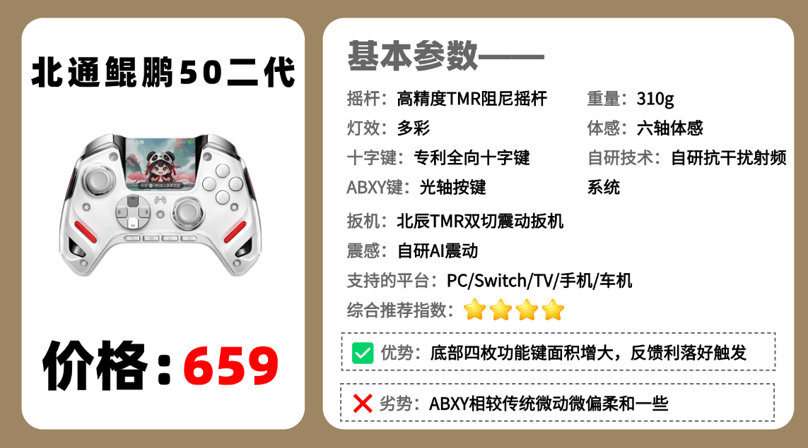 推荐品牌9:北 通鲲 鹏50二代游戏手柄