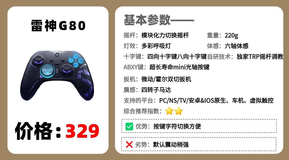 推荐品牌2:雷 神 G 80 游戏手柄