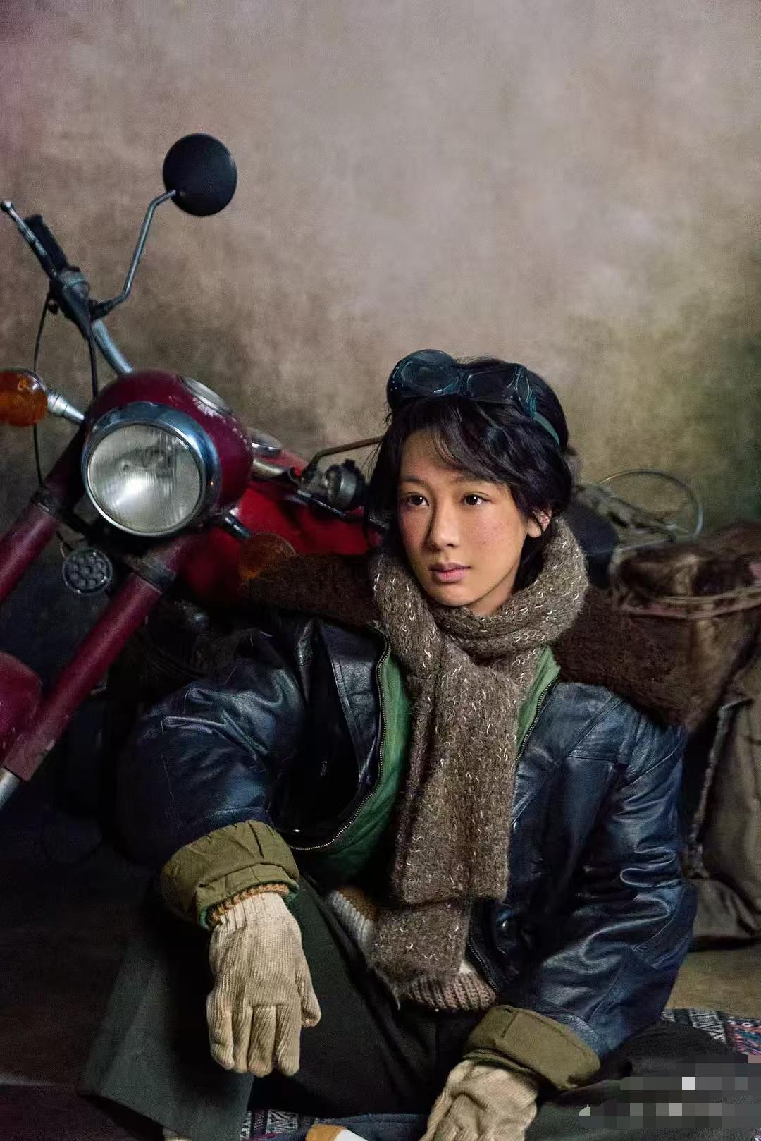 以前印象里的她,都是甜甜美美的,这次大不一样,素颜上阵,皮肤糙得像戈壁滩,嘴唇干裂起皮,一头短发利落得不行,开着红色摩托车在雪山戈壁里横冲直撞,活脱脱一个“狼女”。