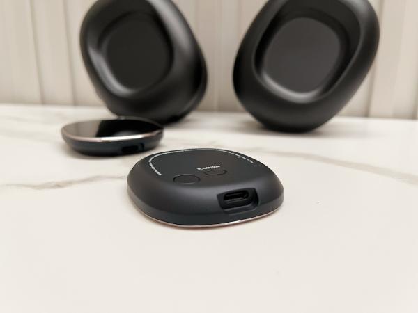 打开盒子,配件一目了然:一副曜石黑耳机本体、两根Type-C充电线(一根给耳机充电,一根给灵动屏充电)、一根3.5mm音频线、一份使用说明书和一张合格证。所有物品都被固定在定制的内衬里,防护到位,拿取也很方便。