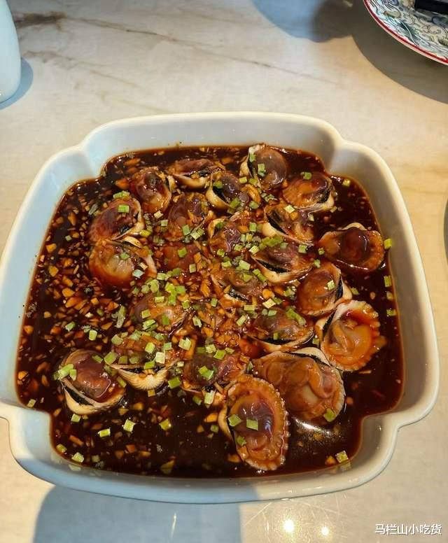 生腌雪蛤,不同于潮汕生腌,里面用的是绍兴花雕酒,酒香清甜,雪蛤Q弹,吃起来Q弹,鲜到舔手指。
