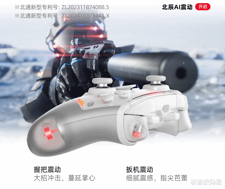 而双切震动扳机更是黑科技,它不仅能提供细腻或强烈的多档震感,还支持蓝牙连接下的扳机原生震动。这意味着在支持的游戏里,扣动扳机时手指能感受到独立的、真实的力反馈,开车时的油门阻力、拉弓时的张力,沉浸感飙升。而AI震动能智能识别游戏内的角色动作(比如《原神》里不同角色的技能,《黑神话:悟空》的蓄力重击),即使游戏本身没有震动支持,它也能通过算法提供适配的震感,目前已适配多款3A大作,这脑洞和执行力,确实展现了北通作为国内智控手柄引领者的创新魄力。