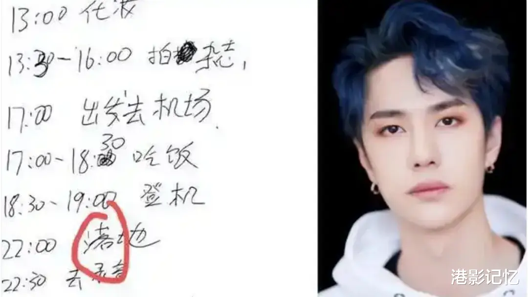 而且,在自曝的行程表中,他把落地的“落”也写错了。