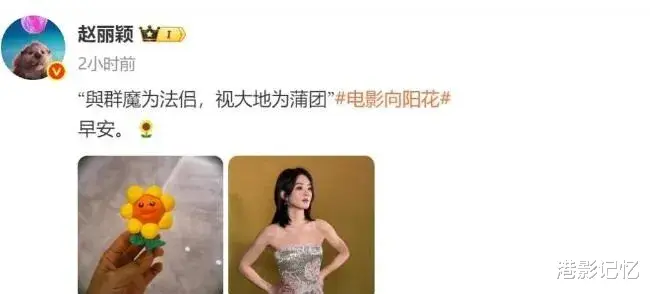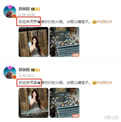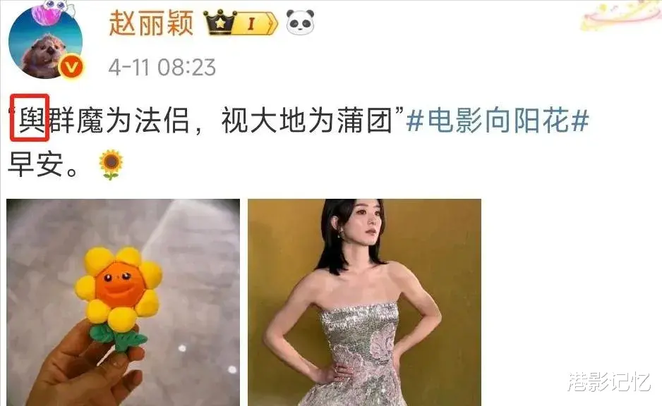 或许是为了凸显自己的文化底蕴,赵丽颖在文案中,刻意把繁体字跟简体字混合起来使用。