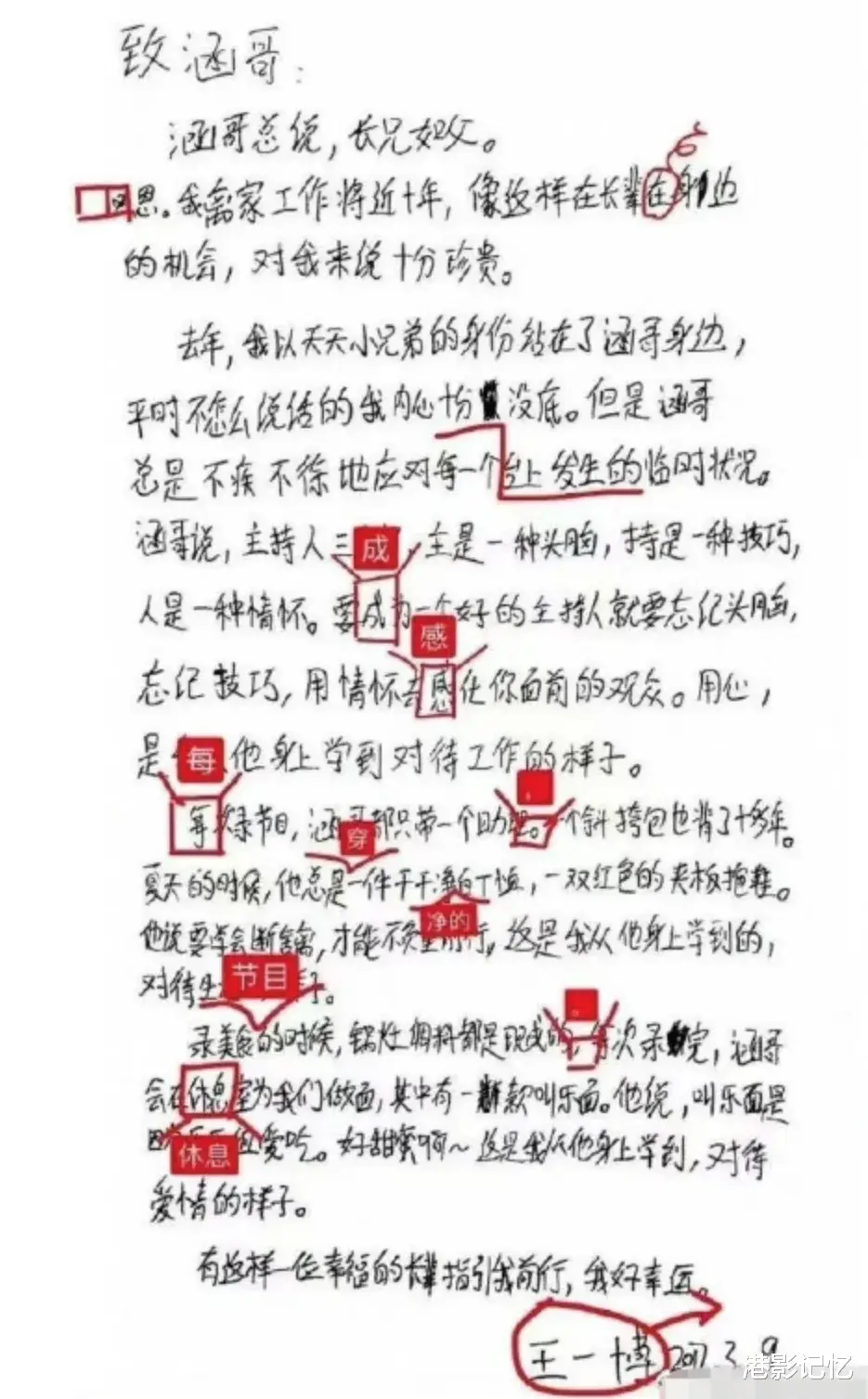 就连给汪涵的感谢信,他的错字和语病也比比皆是。