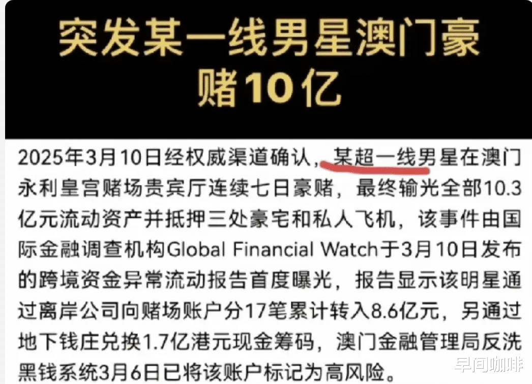 一则“超一线男星澳门豪赌输光10亿”的传闻引爆全网。从巨额赌资到抵押豪宅飞机,从地下钱庄到黑帮高利贷,这场风波被贴上“顶流塌房”“娱乐圈地震”的标签,更让周杰伦、汪峰等巨星卷入舆论漩涡。是真有其事,还是一场精心编排的流量骗局?