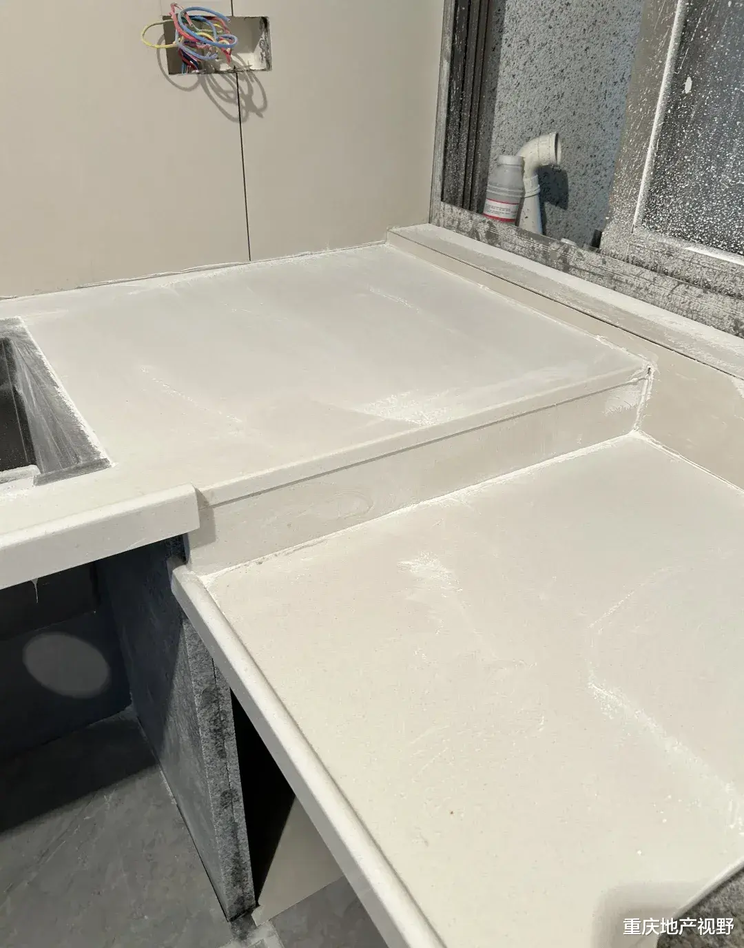 所以说,石英石台面,只要不冲洗,台面上的水渍本身就比较有限,不会都流到地面,不建议再花钱做挡水条