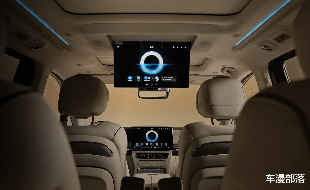在科技配置上,更是将豪华与实用推向新高度。M8乾崑支持7屏互联,包括15.6 英寸中控屏、12.3英寸仪表盘、17.3英寸3K分辨率高清吸顶屏、双侧5英寸扶手屏、流媒体后视镜,以及G-link 副驾屏平板。