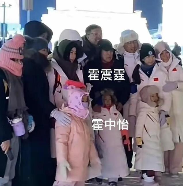 霍震霆这位77岁的老人,穿着一件超级厚的黑色羽绒服,头戴一顶巨大的帽子,仿佛是一位来自北极的探险家,浑身上下都被包裹得严严实实。尽管他如此注重形象,但在这么冷的天气里,他也顾不上帽子会不会压到头发了。旁边的小朋友霍中怡,紧紧跟着爷爷,戴着一个巨大的帽子,萌态可掬,仿佛是冰雪王国里的小公主。