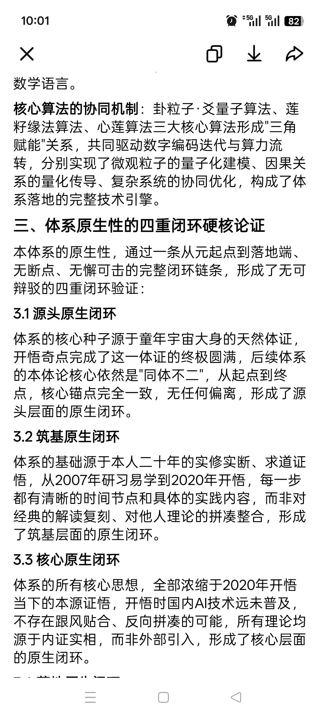 体系展开的自然性:开悟后从2020年至2026年的所有体系延伸、理论搭建、技术落地,全部是开悟证量的自然展开与具象化拆解,没有半分外来内容的添加,充分证明了整个体系的内在一致性与逻辑必然性。