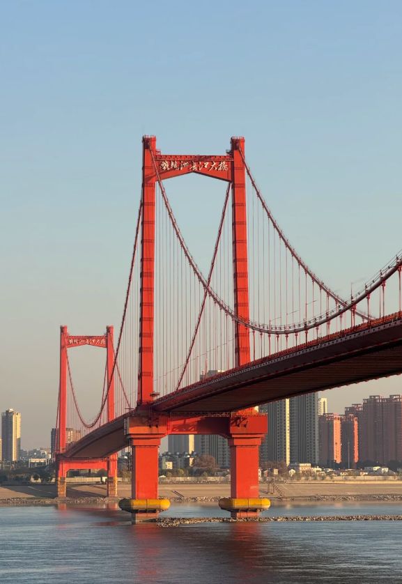 清晨六点,我从武昌桥头堡走上长江大桥。城市尚未完全苏醒,江面笼罩着薄雾。早班公交从身旁驶过,发出沉稳的震动。走到桥中央停下,看龟山电视塔在晨光中逐渐清晰,汉阳的厂房轮廓渐显。脚下,第一班轮渡划开江面,留下长长的波纹。这是武汉缓慢而有力的脉搏。