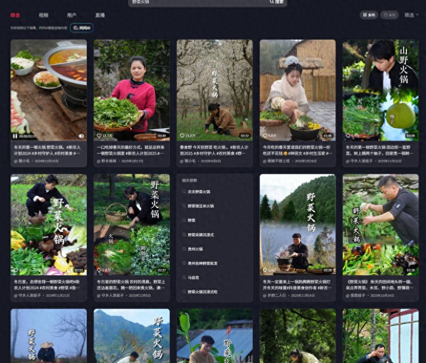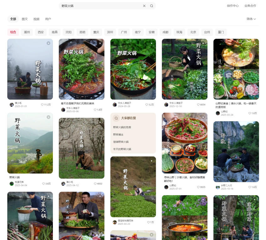 野菜火锅的爆发绝非偶然,而是有坚实的消费数据作为支撑。据中国餐饮协会统计,“乡土食材”“怀旧菜系”相关搜索量年均增长47%,其中野菜火锅相关话题在抖音播放量逼近5千万,小红书笔记超万篇,形成社交传播与消费转化的双向闭环 。美团旅行数据显示,2025年3月以来,“贵州野菜”关键词搜索量同比激增23倍,重庆、成都、上海等一线城市成为消费主力市场,三四线城市需求增速同步突破3% 。